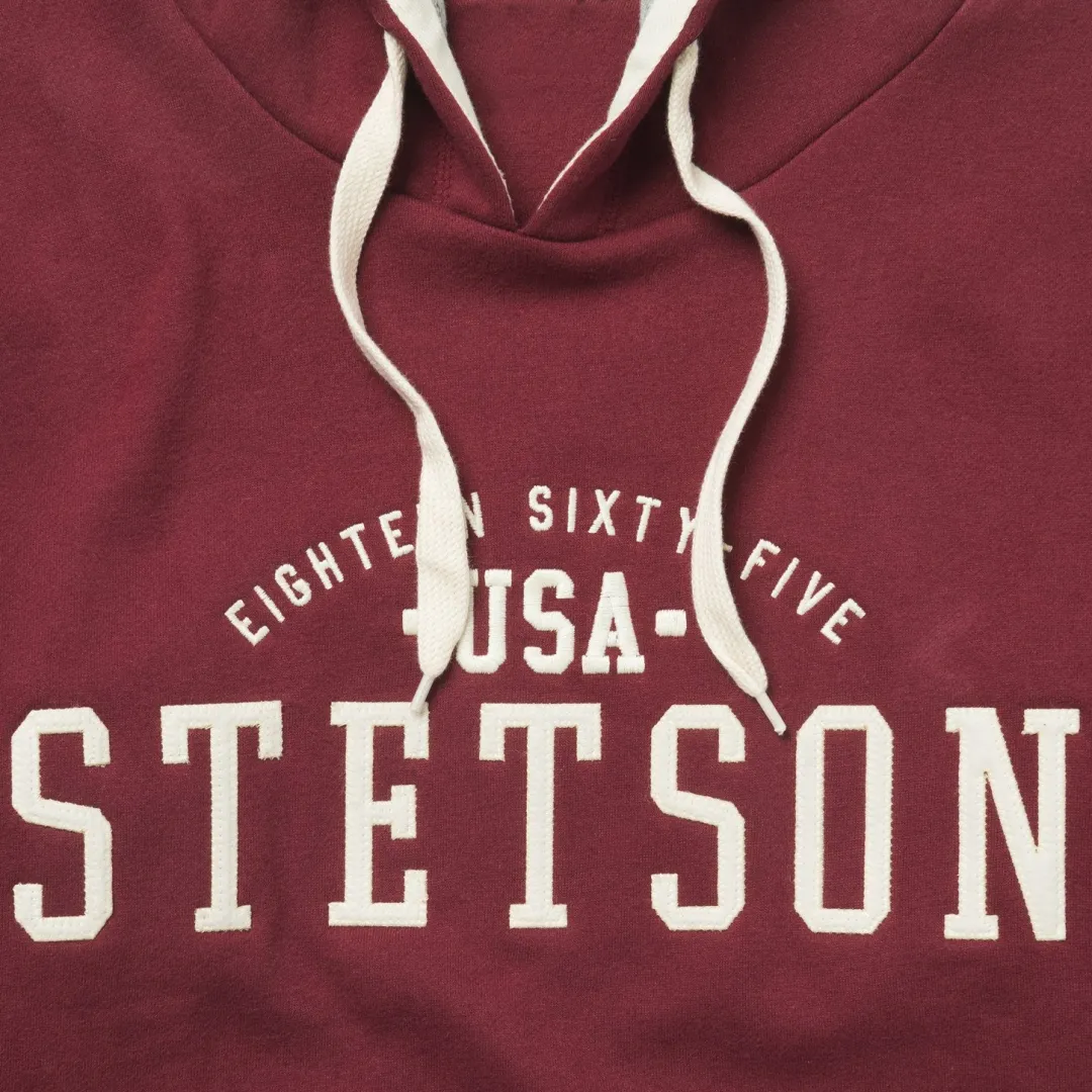 We have a soft spot for a good sweatshirt, and it doesn’t get much better than this. Our ultimate hoodie includes sturdy knit ribbing at the cuffs and hem for durability, a drawcord-adjustable hood and a comfortable kangaroo pocket. Made from a dense-but-breathable cotton blend, this sweatshirt will only get better with time — so go ahead and wear it to work, at your next cookout, camping, or wherever else life takes you. The Stetson name is printed in white on the rich maroon fabric, which features embroidered detailing. Warm, substantial, and comfortable, this is our go-to layer indoors or out — you may never want to wear anything else.