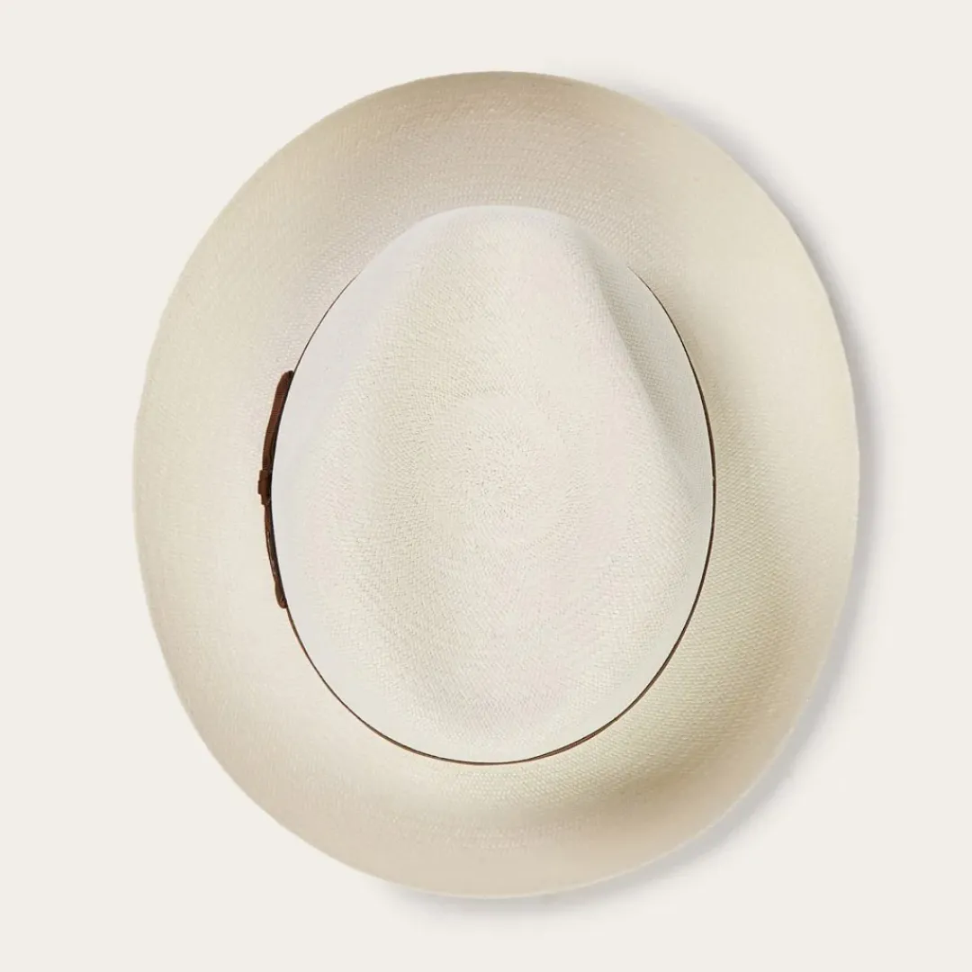 The Ibarra Panama Fedora is constructed of lightweight, soft finish grade 20 panama straw and features a sheepskin sweatband and brown grosgrain hat band.