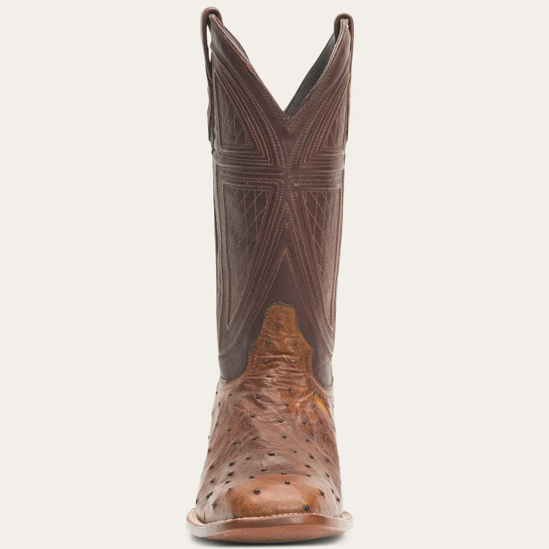 Built rugged, made for adventure and guaranteed to stand out, these wild western boots were handcrafted by Stetson’s legendary bootmakers from premium Full Quill Ostrich leather that’s designed to patina handsomely over time. Features include premium leather lining, removable Poron insoles, premium brass nails and hand-driven lemonwood pegs that enable the boot to withstand the elements by expanding and contracting with any moisture the boot may encounter. Built for riding, each pair is lasted, stitched and tooled by hand to ensure absolute comfort and performance. Frontier-tough, they conform to the wearer over time for years of reliable service. A classic addition to any wardrobe, these boots are a fitting companion for adventurers, cowboys, and gentlemen alike — anyone with a strong appreciation for objects that are made well and get better with age.