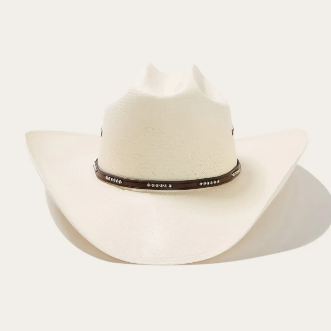 The Llano Shantung Cowboy Hat is constructed of genuine 10X shantung straw and features a dri-lex interior sweatband, studded leather hat band and side vents.