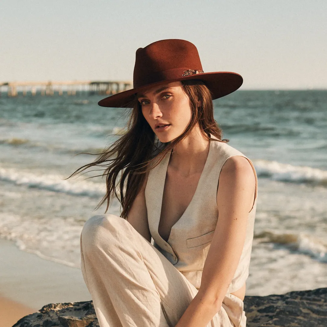 With a wide, flat brim, the Midtown Wide Flat Brim Hat is a rakish hat that, true to its name, exudes city style. Made in Texas from firm high-quality felt, it features a grosgrain ribbon hat band accented by a bold feather accent. On the interior, an absorbent Dri-Lex sweatband ensures it’s as comfortable as it is stylish.