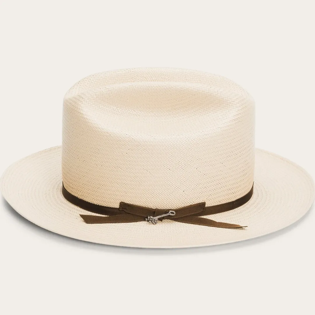 The Open Road Straw features a genuine leather sweatband and a 4 ¼” crown outfitted with a satin hat band.