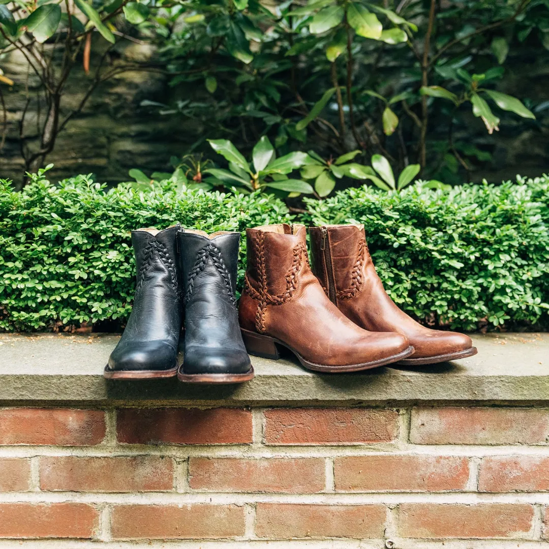 Vintage vibes and an original twist on a cowboy classic, these shorties are handcrafted by Stetson’s legendary bootmakers from premium leather that’s designed to patina handsomely over time. Features include a braided shaft, all leather lining, premium brass nails and hand-driven lemonwood pegs that enable the boot to withstand the elements by expanding and contracting with any moisture the boot may encounter. Each pair is crafted by hand to ensure absolute comfort and performance. Frontier-tough, they conform to the wearer over time for years of reliable service. A classic addition to any wardrobe, these boots are a fitting companion for anyone with a strong appreciation for objects that are made well and get better with age.