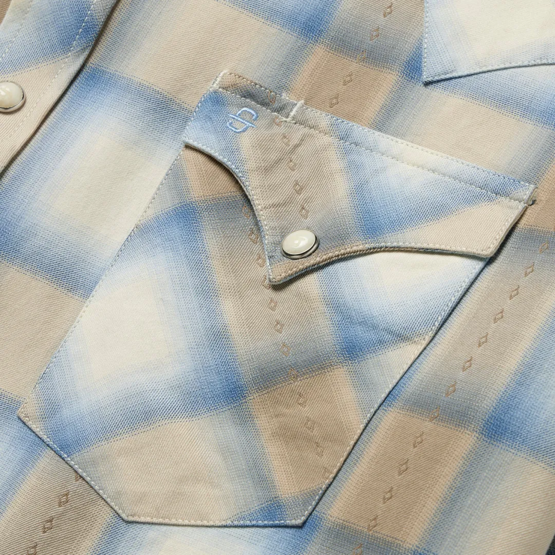 This western shirt is crafted from yarn dyed 100% cotton dobby and features an exclusive sand plaid with satin stitch. It has a one-point ultra-deep curved back yoke, logo pearl snap front, contrasting chambray inside trim, and three snap cuffs. The front left pocket is embroidered with the Stetson “S” logo and the right sleeve placket is embroidered with “STETSON.” Garment washed for softness, it has the feel of an old favorite that will only get better with time. Cut trim for a modern fit.