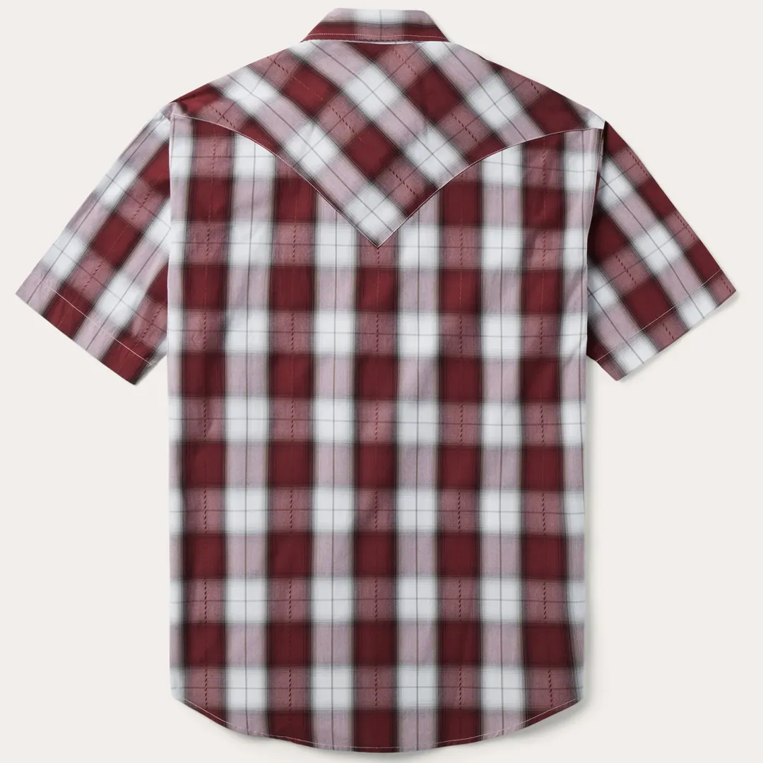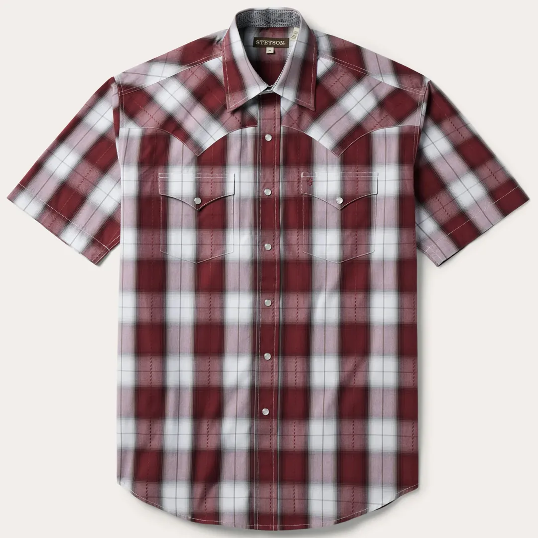 This Western shirt is crafted from a yarn dyed plaid cotton dobby with a one-point ultra-deep curved back yoke. It features a Stetson “S” logo embossed on the front left pocket and contrast inside trim and its classic snap front features logo pearl snaps. Crafted with 100% cotton for quality and breathability, it has a feel that will only get better with age.