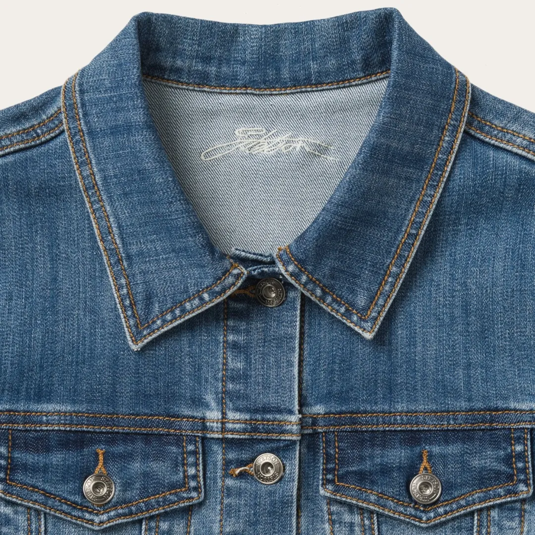 A classic style updated with premium details, this button-front, denim jacket has front and back seaming, single point chest pockets and subtle distressing. Adds instant style when worn over your favorite graphic tees.