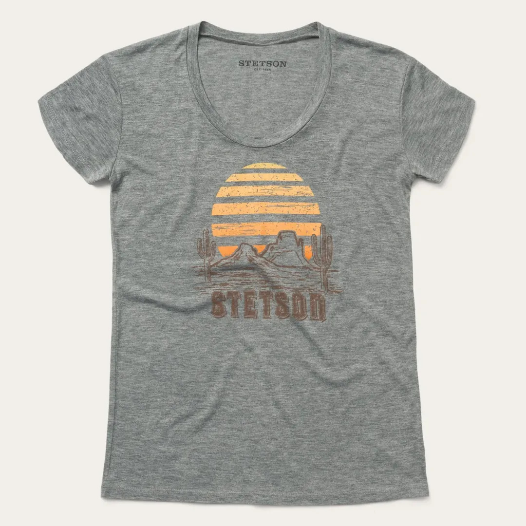 Nothing says good times like the relaxed feel of a graphic tee. Designed for maximum comfort without sacrificing an ounce of style, our t-shirts are made from airy cotton and screen-printed with custom signature graphics. This Western Stetson tee has been gently distressed, providing the perfect worn-in look for the spirited cowgirl. Go casual with a pair of jeans and boots, or dress things up with a skirt and sandals — however you decide to wear it, this shirt will see you through your day and then some. Extra soft and cut with the perfect slim fit, it’s an instant classic.