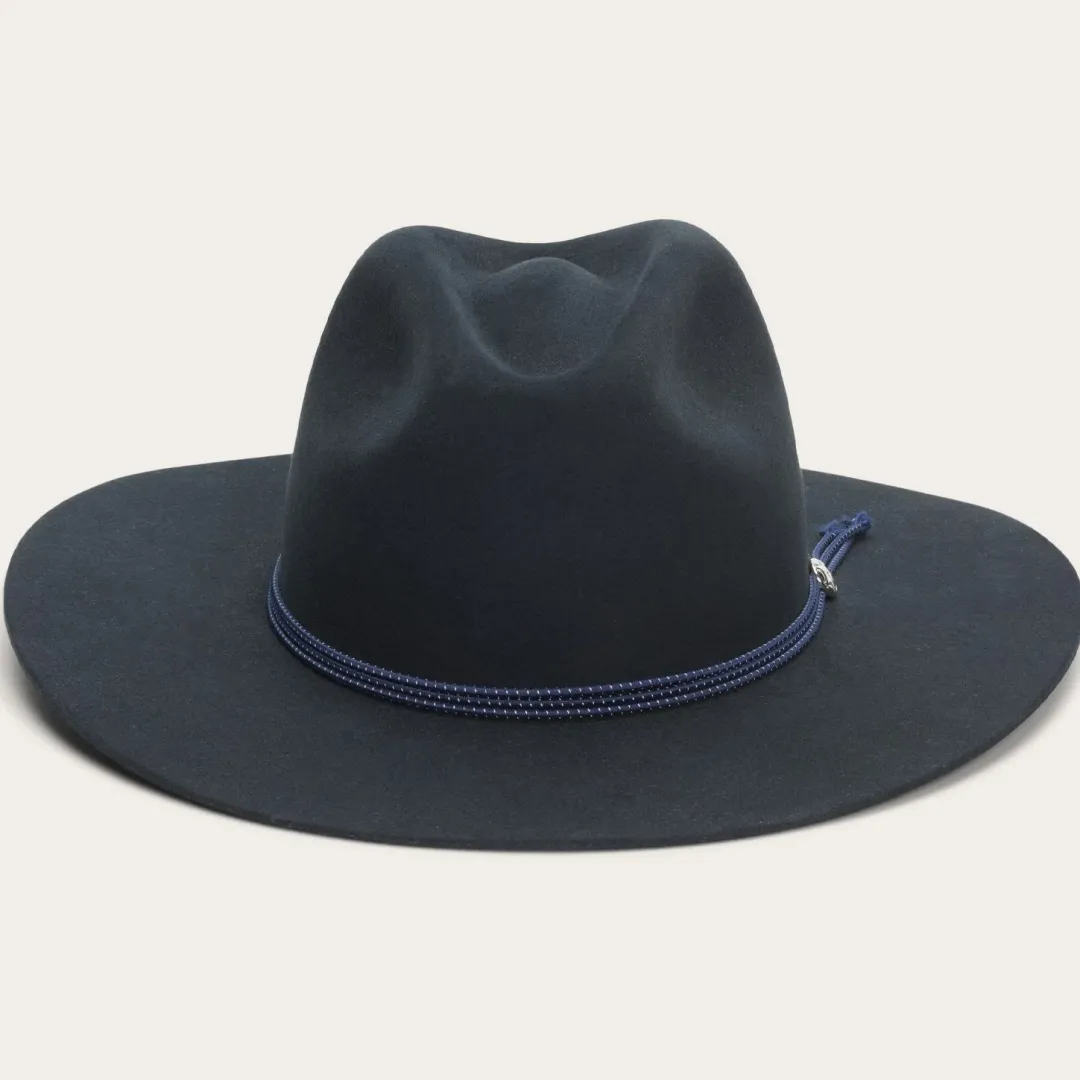 Part of the new Stetson Seeker collection, the Four Points is a Western-inspired hat designed for adventurers that traverse the outdoors and the city. In a midnight navy blue, the Four Points features a matching cord band, an interior cowhide sweatband and a firm, and 6X quality fur felt construction. Proudly made in Texas.