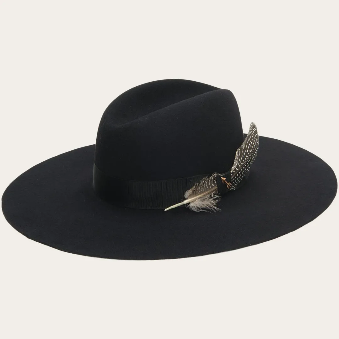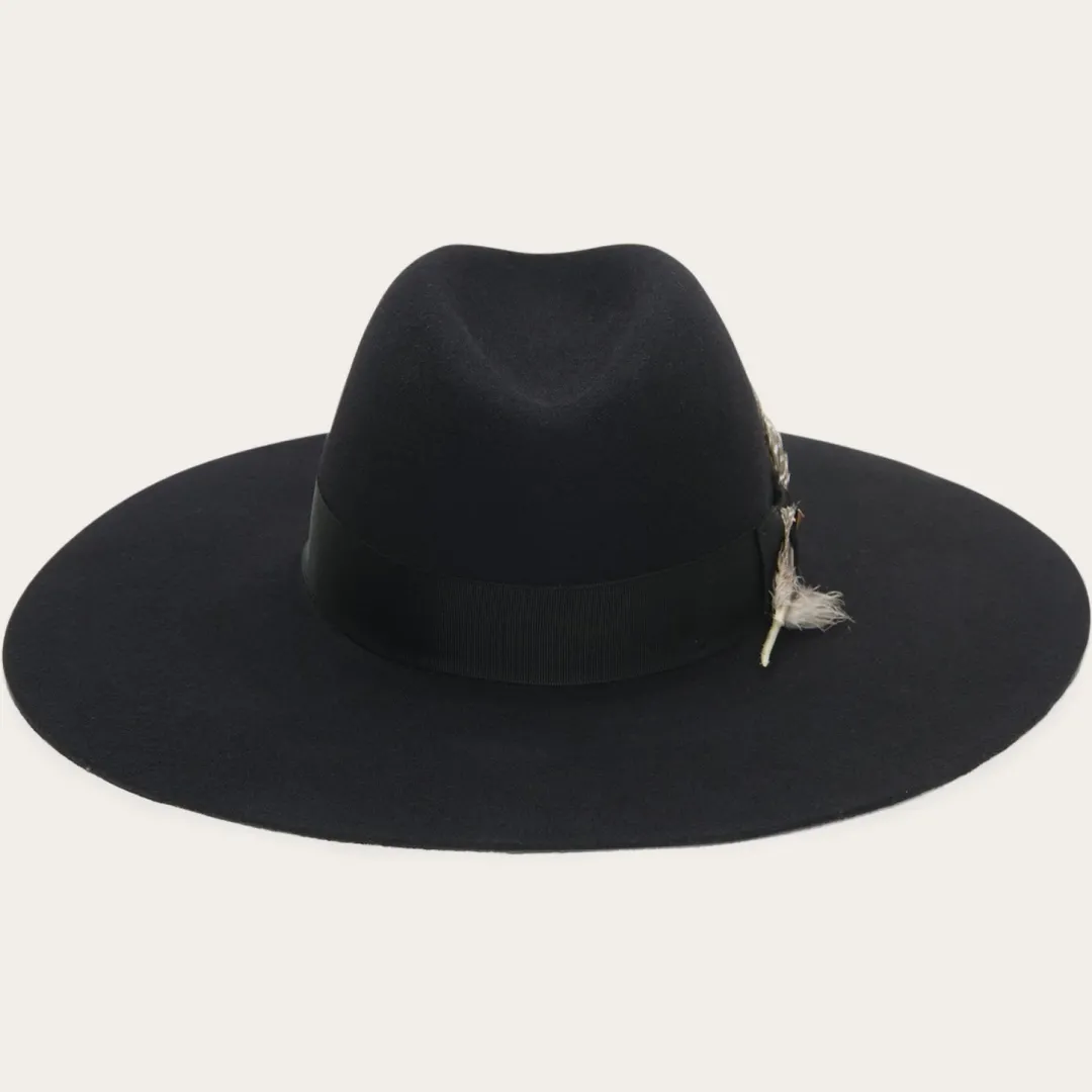 Part of the new Stetson Seeker collection, the Rapture is a Western-inspired, outdoor-ready, soft felt hat designed for adventurers that traverse the outdoors and the city. Available in a rich mushroom or deep black hue, the Rapture features an interior cotton sweatband and extra-wide brim at 4 ½ inches. Distinctive and practical, the Rapture is styled with a natural feather and rich ribbon. Proudly made in Texas.