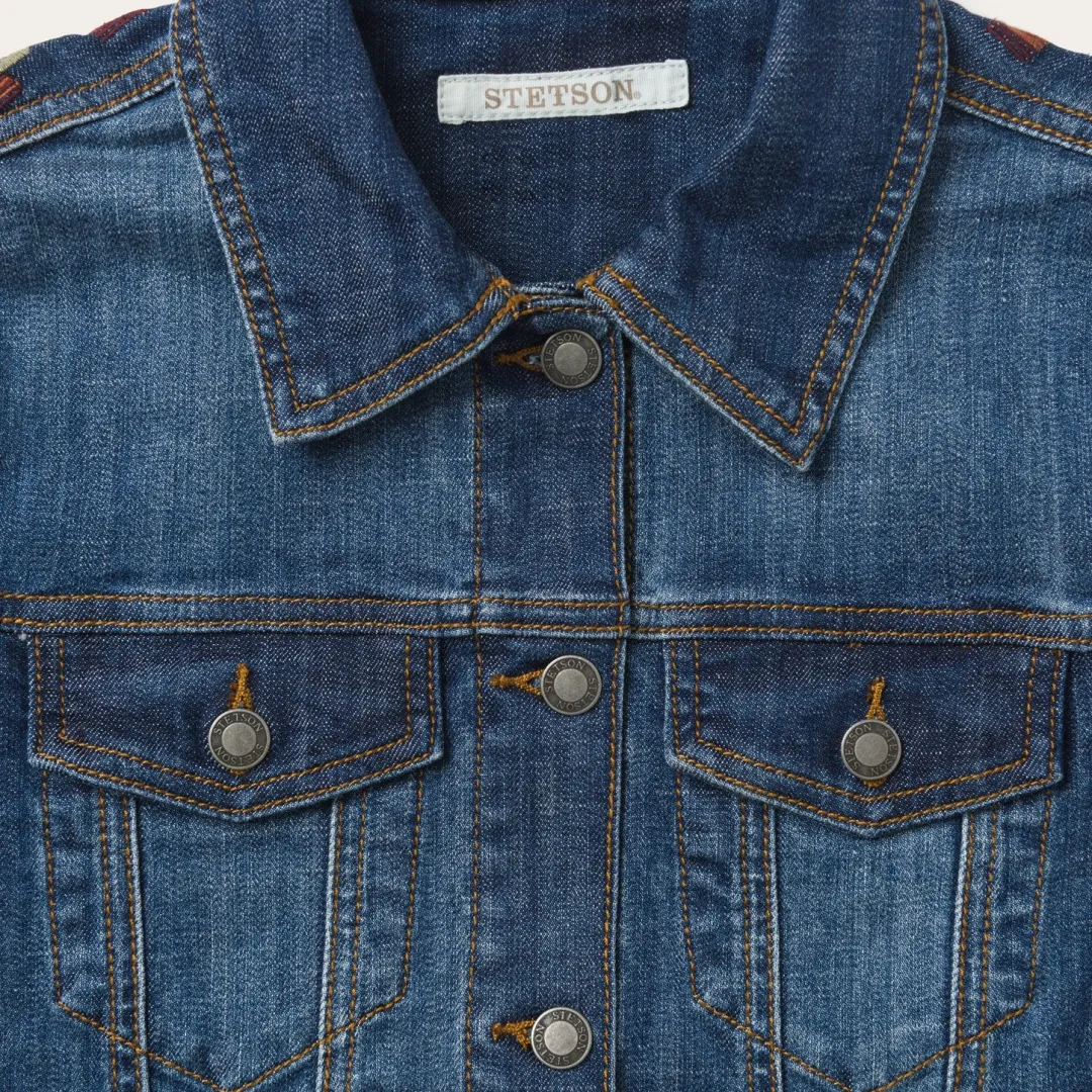 A classic style updated with premium details, this button-front, denim jacket has front and back seaming, single point chest pockets and contrast embroidery. Adds instant style when worn over your favorite graphic tees.
