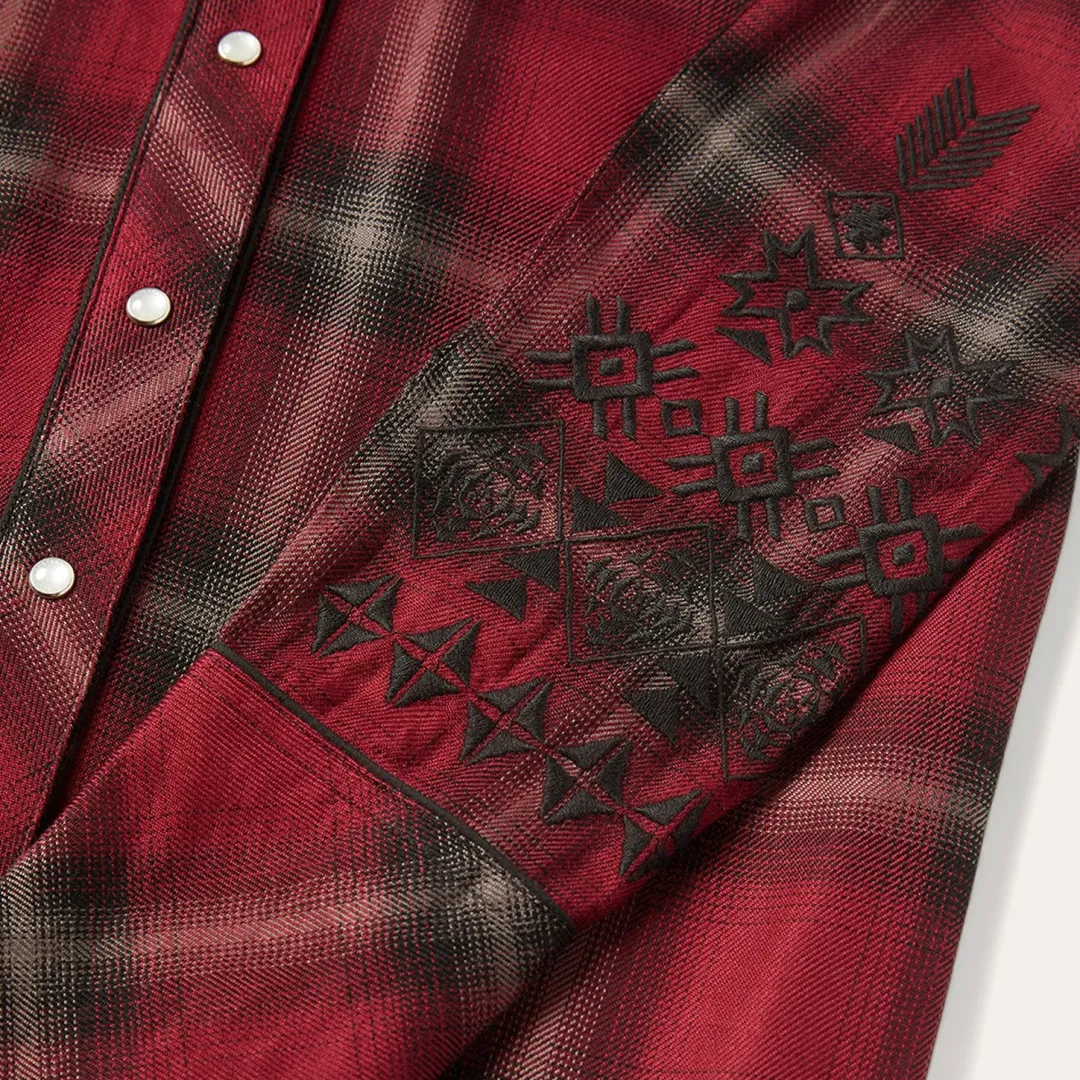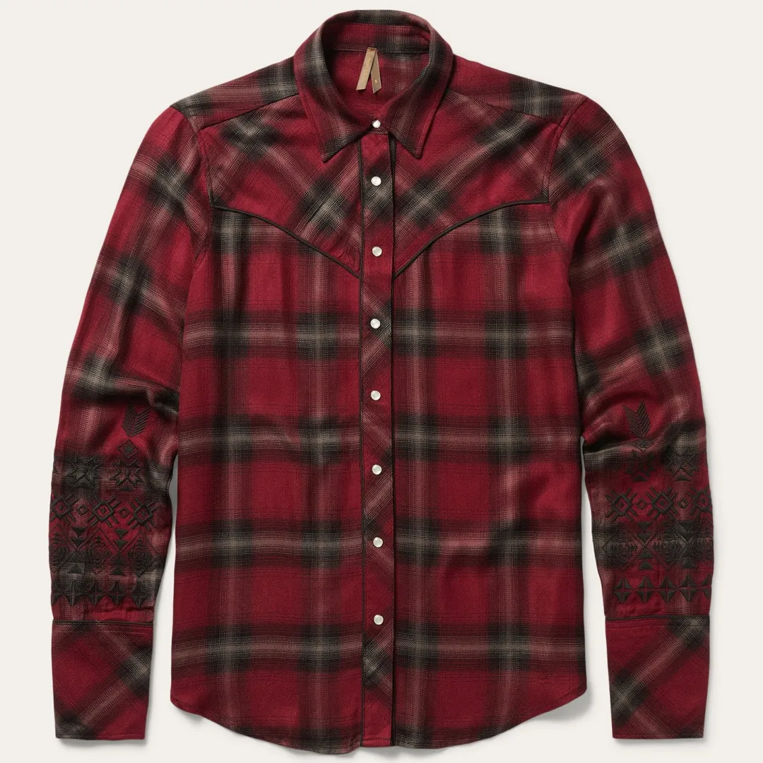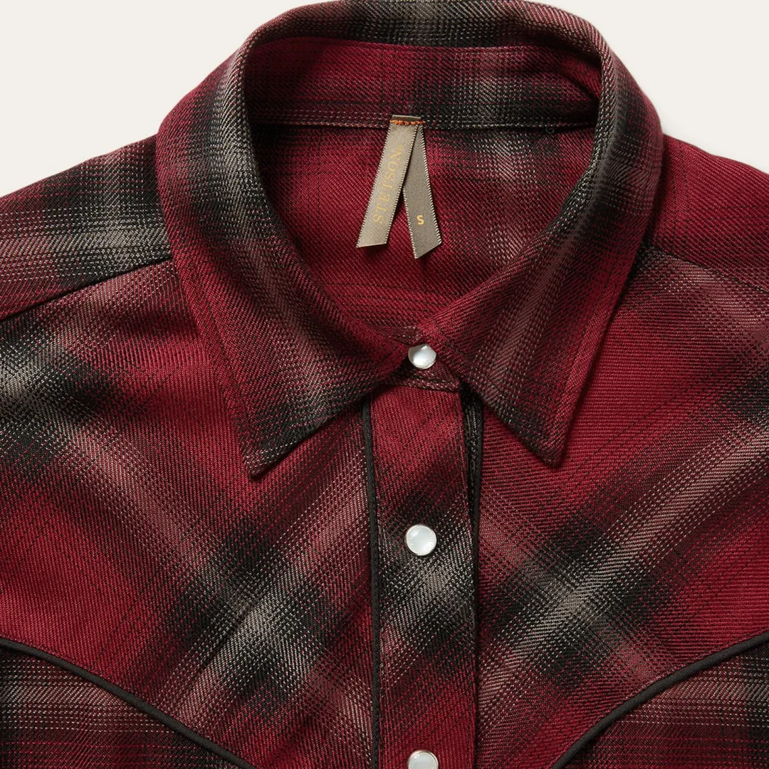Made for the woman of the outdoors. This snap-front western shirt is constructed with extremely soft brushed rayon and features a deep-V front yoke, single-point back yoke, and piping at the yokes, placket and above the cuffs to round out a modern western look that’s at home out on the ranch or out on the town.