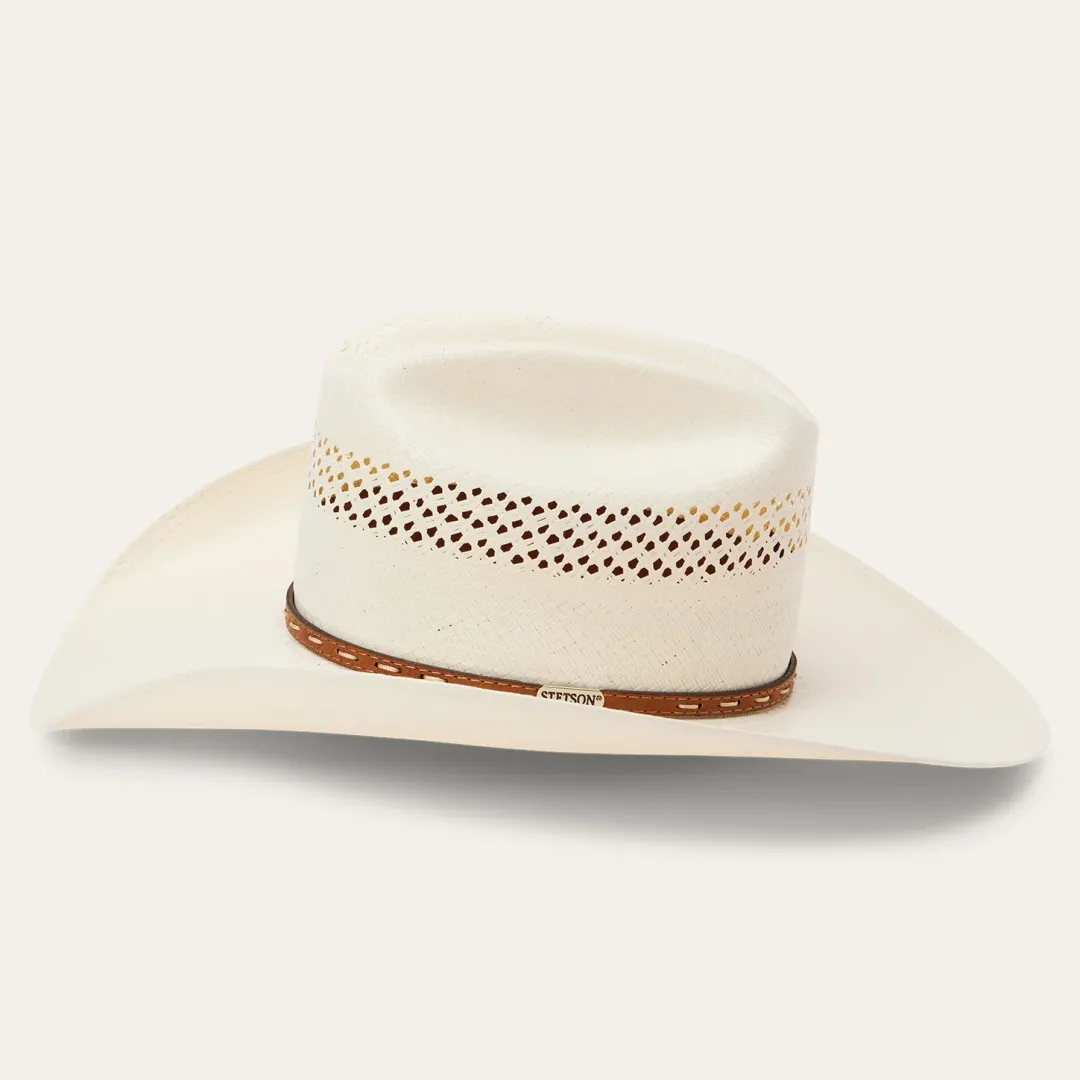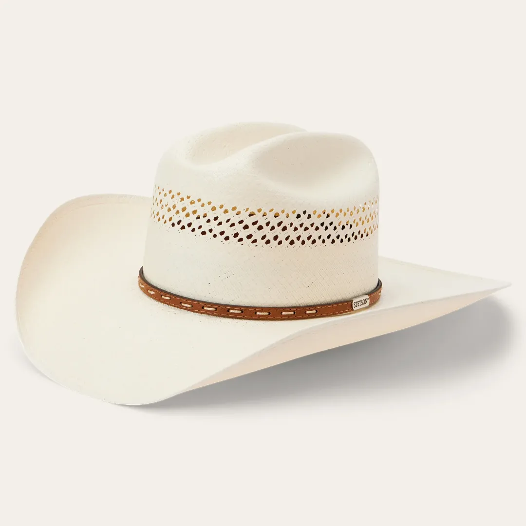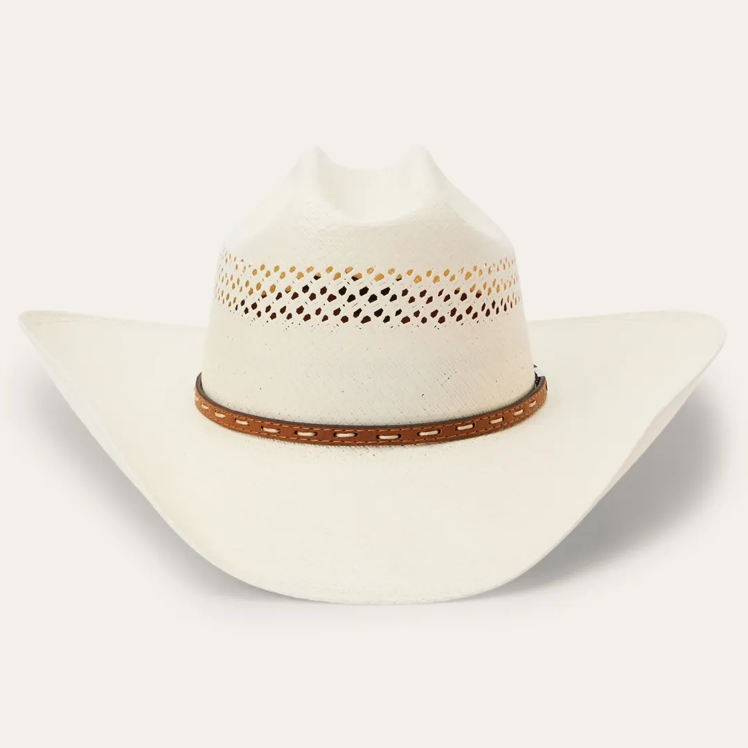 Handmade in the USA, the Williston 8X Straw Cowboy Hat has a 4 1//4” brim and a 4 1/8” regular oval crown with cattleman’s crease and all-around venting for superior circulation and breathability. Its rugged Western style is enhanced by a pick-stitch leather hat band and a genuine leather sweatband ensures premium comfort all day long.