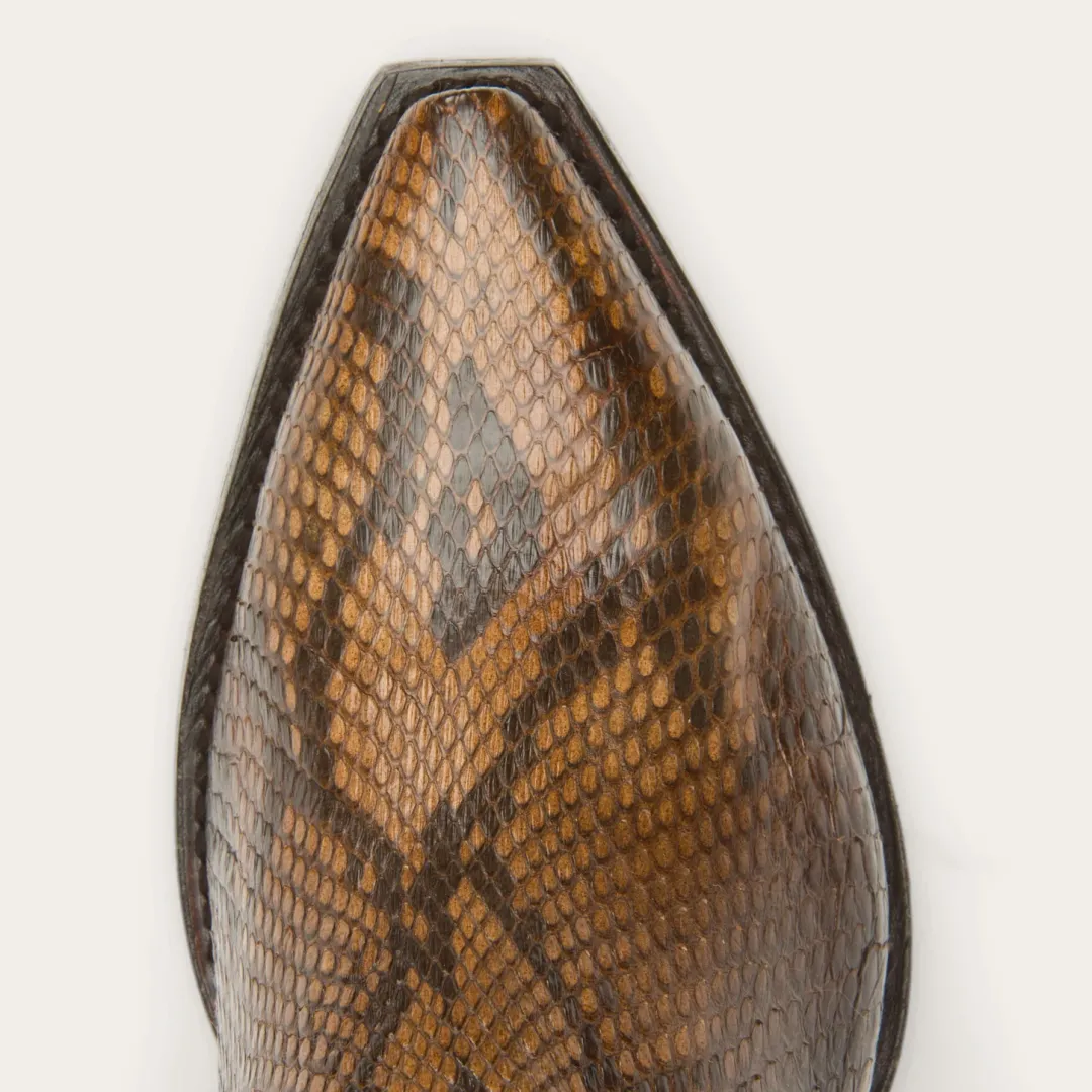 The iconic Yasmin boots make a statement wherever you go. These premium boots are constructed of brown Python vamp and a single welt. The high-quality cushioned leather insole ensures absolute comfort. Built to stand out, each pair is lasted, stitched, and tooled by hand to ensure absolute excellence and performance.