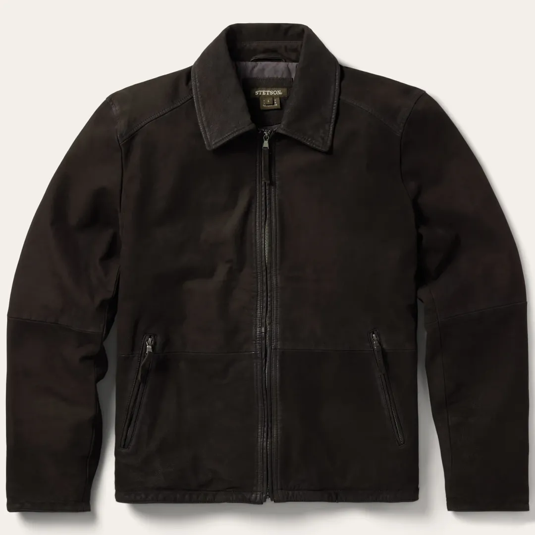 This rugged and durable suede leather jacket has a full front welted zip closure, welt hand pockets, a drop shoulders, leather zipper pulls and front and back seam details. Fully lined for additional warmth and comfort, its made for an adventurous lifestyle. At Stetson, we use the toughest materials and fabric to provide you with the best Western outerwear for men who spend their days in the great outdoors.